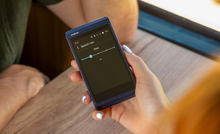 Justér afspilningshastigheden efter dine behov. Sænk farten for at fange hver detalje, eller skru op for farten, når du har travlt. Vasco følger dit tempo, så intet går tabt i oversættelsen.