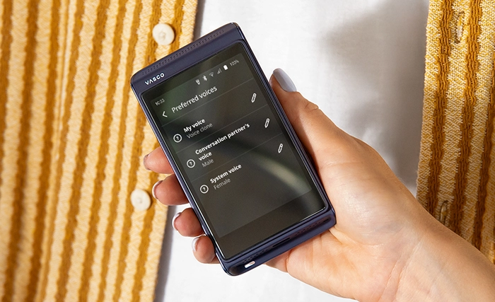 For dig, der kan lide valgmuligheder. Ud over den banebrydende funktion Vasco My Voice kan du også vælge en klassisk mandlig eller kvindelig stemme til at læse oversættelserne op. På den måde kan du tilpasse tonen efter situationen. Foretrækker du en mere formel stemme til forretningsmøder eller en varmere til samtaler med familien? Din oversætter, dine regler.